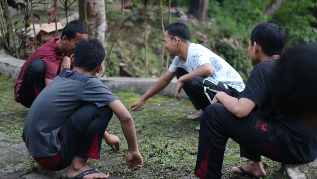 - Kerja Sama (Ukhuwah): Terlihat dalam gambar, para santri berbagi tugas; ada yang menyapu jalanan setapak, ada yang merapikan dahan, menciptakan kekompakan di luar jam pelajaran kelas.